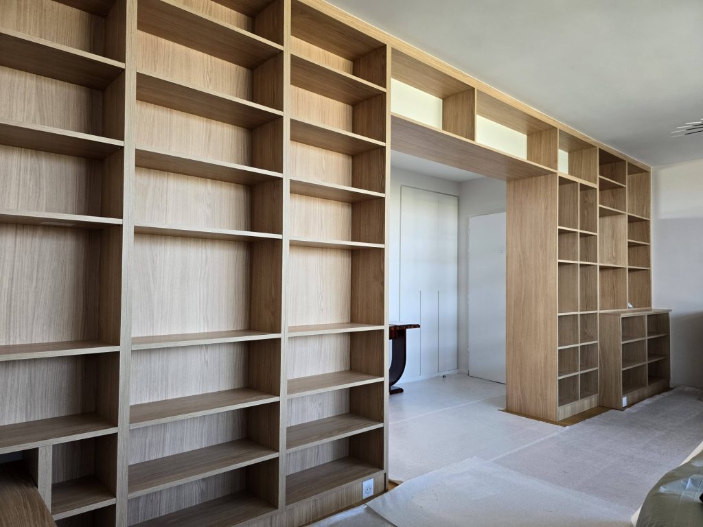 4. Finition et installation : Une fois que le meuble est fabriqué, il passera par une étape de finition. Cela peut inclure l’application de laque, de vernis ou de peinture, ainsi que le polissage et le ponçage pour obtenir une finition lisse et durable. Une fois que le meuble est prêt, l’artisan l’installera dans votre appartement et s’assurera qu’il est parfaitement intégré à votre intérieur.